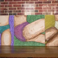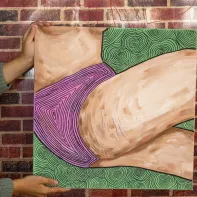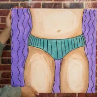Each painting shows an insecurity. The first one being stretch marks, the second being body hair and the third being 'hip dips'. One thing in common with all of these features is that when you search for them on Google, the first thing you are met with is ways to get rid of them. When the reality is, for stretch marks and hip dips, you can't. But this standard that is imposed on women makes them feel like they have to - that they are not beautiful because of their natural selves. These paintings aim to change this.